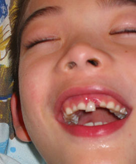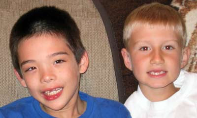 Jon and Austin with mouths newly denuded of teeth.