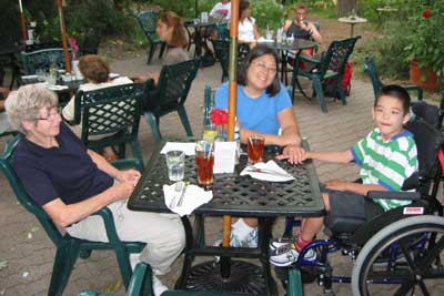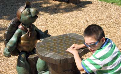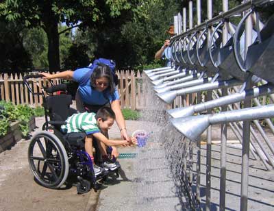 Jon with Franklin at the new Franklin Children’s Garden, a wonderfully gentle place. Not quite as wheelchair friendly as they think in places (wood chips are very hard, and soft sand is a no go).