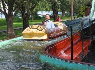 The flume. In line, Jon noted a number of people were screaming and I asked him whether he was a laugher or a screamer. He said he was a screamer. He was wrong, from the moment we started to plunge, he laughed his head off.