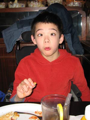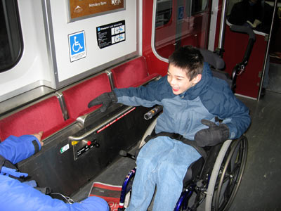 It’s tough to see down from a wheelchair away from the window. Especially since that’s about thirty seconds pre-arrival/post-departure (finding space, setting brakes on). But we certainly showed him that we were outside and up high. Jon seemed more impressed by the absence of those things: a couple of times he happily exclaimed, “This tunnel is really dark!”