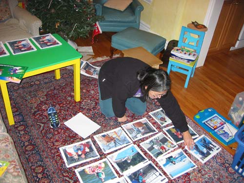 Sorry for the quiet second half of December folks, it gets a little busy around here due to a self-created annual blitz. Every year, one of us (Laura this year) does up a New Year’s illustration and the two of us go into overdrive as we produce a New Year’s card, a fully designed Jon-themed calendar and DVD of Jon’s home movies for family, and we create a gifts for Jon’s teachers and Ed. Assistants– all of these based on that visual theme. So although we started into this when paying work had died down earlier this month, Laura and I were beavering away, up well past 2 am Christmas Eve working on the final design touches for the DVD and slipcase.